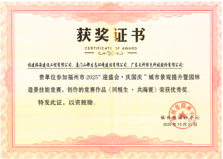 为热烈庆祝中华人民共和国成立76周年,并迎接在福州举办的2025世界航海装备大会,福州市园林中心特别组织开展了2025“迎盛会·庆国庆”城市景观提升活动及园林造景技能竞赛,吸引了众多园林设计与施工企业参与。