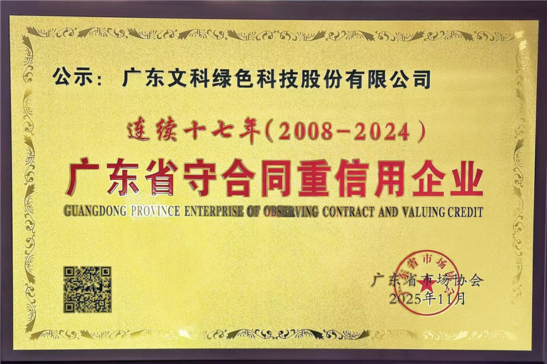 近日,广东省市场协会正式公布了2024年度第二批“守合同重信用企业”评定结果,广东402永利集团官网入口绿色科技股份有限公司(简称“402永利集团官网入口”)凭借卓越的合同管理能力和诚信经营理念,再度荣获这一称号,实现了连续十七年蝉联该称号的优秀成绩。