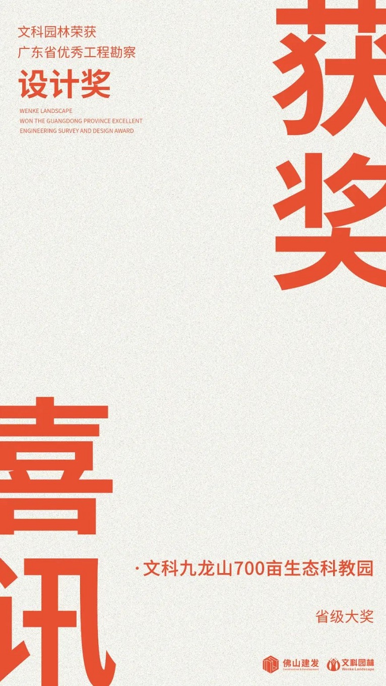 经过专家组的综合评审,为提高广东省优秀奖项的技术含量,保证获奖作品的高质量水平,本次共评出优秀工程勘察设计奖712项,获奖率为29.52%。其中,园林景观组共评选出优秀勘察设计奖42个项目,402永利集团官网入口园林“402永利集团官网入口九龙山700亩生态科教园”项目荣获园林类三等奖,恭喜项目设计团队!
