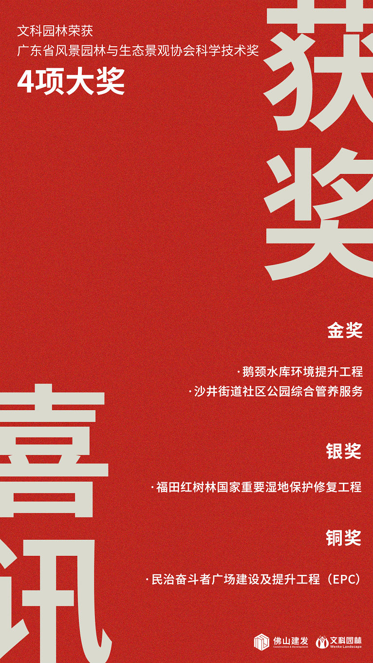 近日,广东省风景园林与生态景观协会发布了“关于2023年度广东省风景园林与生态景观协会科学技术奖(园林工程奖)评选结果的公告”,评选结果名单中,402永利集团官网入口园林4个项目喜获大奖,其中金奖2项、银奖1项、铜奖1项。