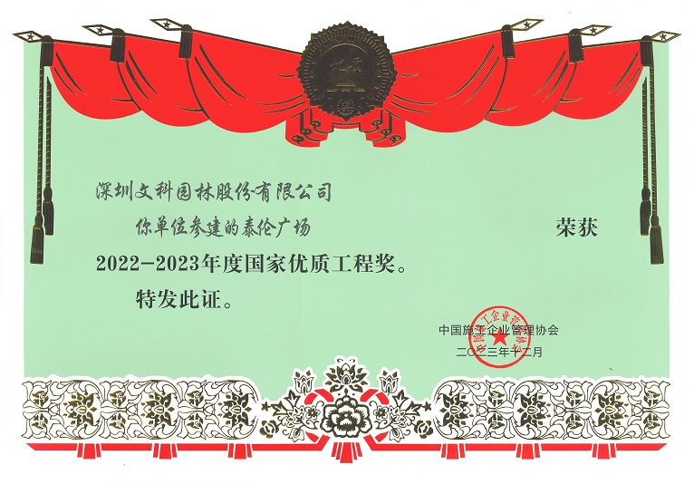 402永利集团官网入口承建了泰伦广场的园林景观工程,施工范围包含首层室外园林景观工程、下沉广场园林景观工程、屋顶花园园林景观工程等。在履约过程中,公司践行工匠精神,贯彻精品工程建设理念,严抓质量过程管理,保证工程质量可控,打造深圳后海地标性建筑,共同构建世界级滨海城市的天际线,树立了良好企业形象。