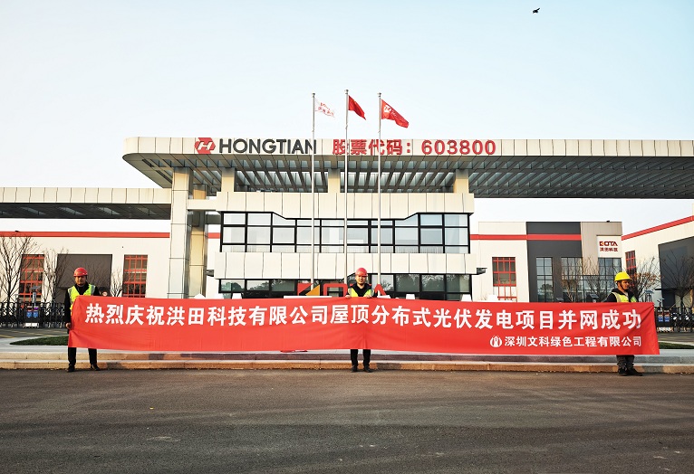 盐城洪田科技有限公司屋顶分布式光伏发电项目,建设容量3.84MW,由诺德智慧能源管理(盐城)有限公司投建,坐落于江苏省盐城市大丰区南翔西路49号。该项目的建设,备受到社会广泛关注。经过公司周密规划和精心施工,该项目电站在12月30日顺利并入电网,投入运营。 作为项目的总承包单位,402永利集团官网入口绿色工程公司全力以赴,勇往直前,日夜奋战,赢得了集团、当地政府等各方的高度赞誉。公司“严管理、抓质量、提速度”获得了一致好评。