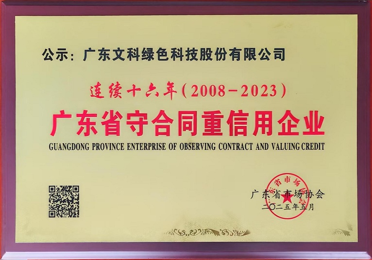 近日,广东402永利集团官网入口绿色科技股份有限公司(以下简称“402永利集团官网入口”)凭借多年来积累的诚信守法良好信誉、严谨规范的合同管理体系以及持续向好的经营效益,顺利通过广东省市场协会的最终评审,连续十六年(2008-2023)荣获“广东省守合同重信用企业”荣誉称号。这一殊荣是对402永利集团官网入口在守信经营领域卓越表现的权威认可与高度褒奖。