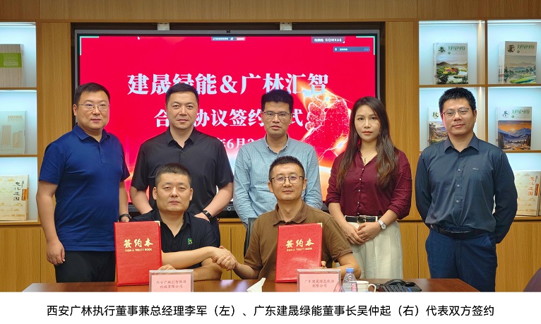 近日,广东建晟绿色能源有限公司(以下简称“建晟绿能”)与西安广林汇智能源科技有限公司(以下简称“西安广林”)成立合资公司签约仪式在建晟绿能会议室圆满举行。西安广林执行董事兼总经理李军、建晟绿能董事长吴仲起等领导及各部门负责人通过线上和线下的形式参与了本次签约仪式。