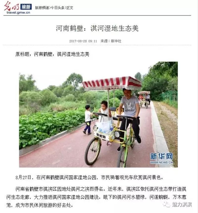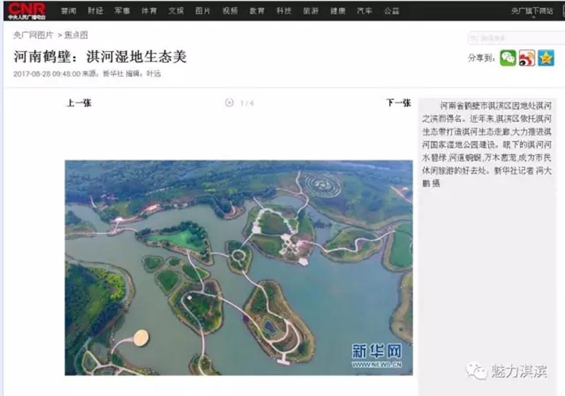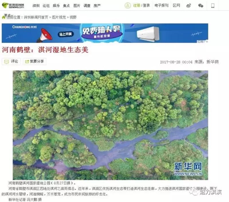 而早在8月份,新华社就曾发组图点赞淇河国家湿地公园,新华网、人民网、光明网等数十家媒体争相转载报道。