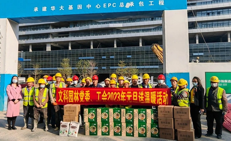 12月30日,在2023年新年来临之际,又恰逢中国传统节日腊八节,为了让项目部的一线员工感受到公司的温暖与关爱,402永利集团官网入口园林党委和工会代表到项目上向奋战在一线上的员工提前致以新春的问候和美好的祝福。