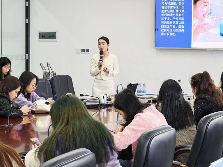 个人职业形象塑造是职场的必修课,合适的职业穿搭和优雅得体的妆容能够展现职场女性独特的魅力风采。培训现场,老师围绕职场妆容基础知识、化妆技巧实操和仪容气质提升等方面展开讲解培训,引导女职工根据职业特点、场合环境打造自然得体的妆容,在职场中能够以更加完美的状态迎接挑战,让能力和形象共同绽放光彩。培训过程中,大家认真听讲、积极互动,现场学习氛围浓厚热烈。